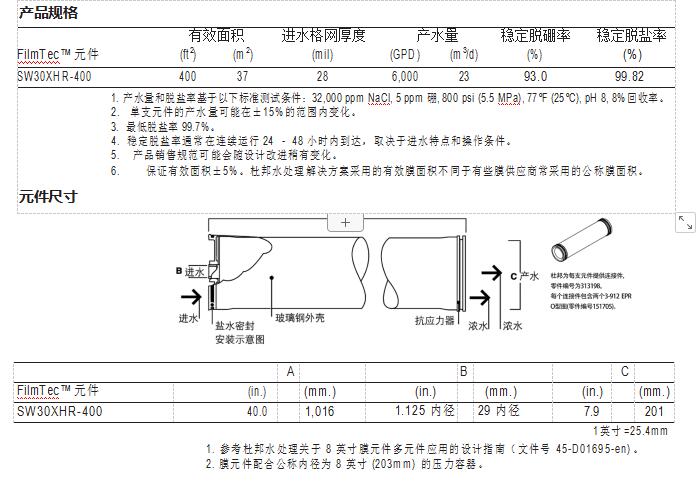 FilmTec™ SW30XHR-400 元件有以下優(yōu)點 :