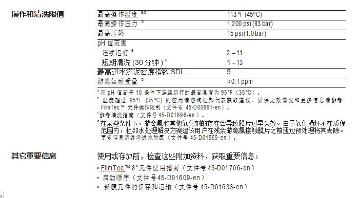 • 無需進(jìn)行氧化后處理保證了在整個運(yùn)行周期內(nèi)都能保持高性能。FilmTec™ 元 件更耐用,且能在更寬泛的 pH 值范圍(1-13)內(nèi)進(jìn)行化學(xué)清洗。