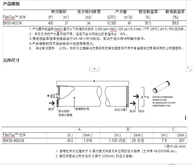 FilmTec™ BW30-400/34 元件經(jīng)證明,具有優(yōu)異的性能: