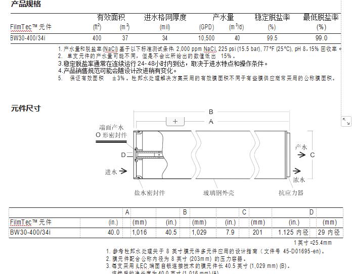 FilmTec™ BW30-400/34i 元件經(jīng)證明,具有優(yōu)異的性能: