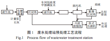 2 臺(tái)電解絮凝反應(yīng)器的外形尺寸分別為φ2.3 m×2.5 m,有效容積4.2 m3,極板面積20 m2,板間距15mm,陽(yáng)極與陰極材料均采用φ32 鐵棒,電極間距為50 mm,單臺(tái)設(shè)計(jì)流量為10 t/h,電解反應(yīng)時(shí)間0.5 h;使用高頻脈沖直流電源,逆變脈沖頻率為20 kHz。