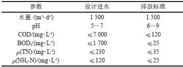 該公司廢水來源主要為AE 酯、氨噻肟酸、鄧鈉鹽等產(chǎn)品生產(chǎn)過程中的真空泵下水、少量萃取分層或離心廢水、地面沖洗水以及冷排水。經(jīng)現(xiàn)場污染源強調(diào)查分析,該混合廢水具有有機污染物種類多、濃度高、抗生素含量較高、可生化性較差等特點。根據(jù)環(huán)保要求,廢水處理后水質(zhì)應(yīng)達到GB 21904-2008 表2 標(biāo)準(zhǔn)。設(shè)計水質(zhì)水量及排放標(biāo)準(zhǔn)列于表1。