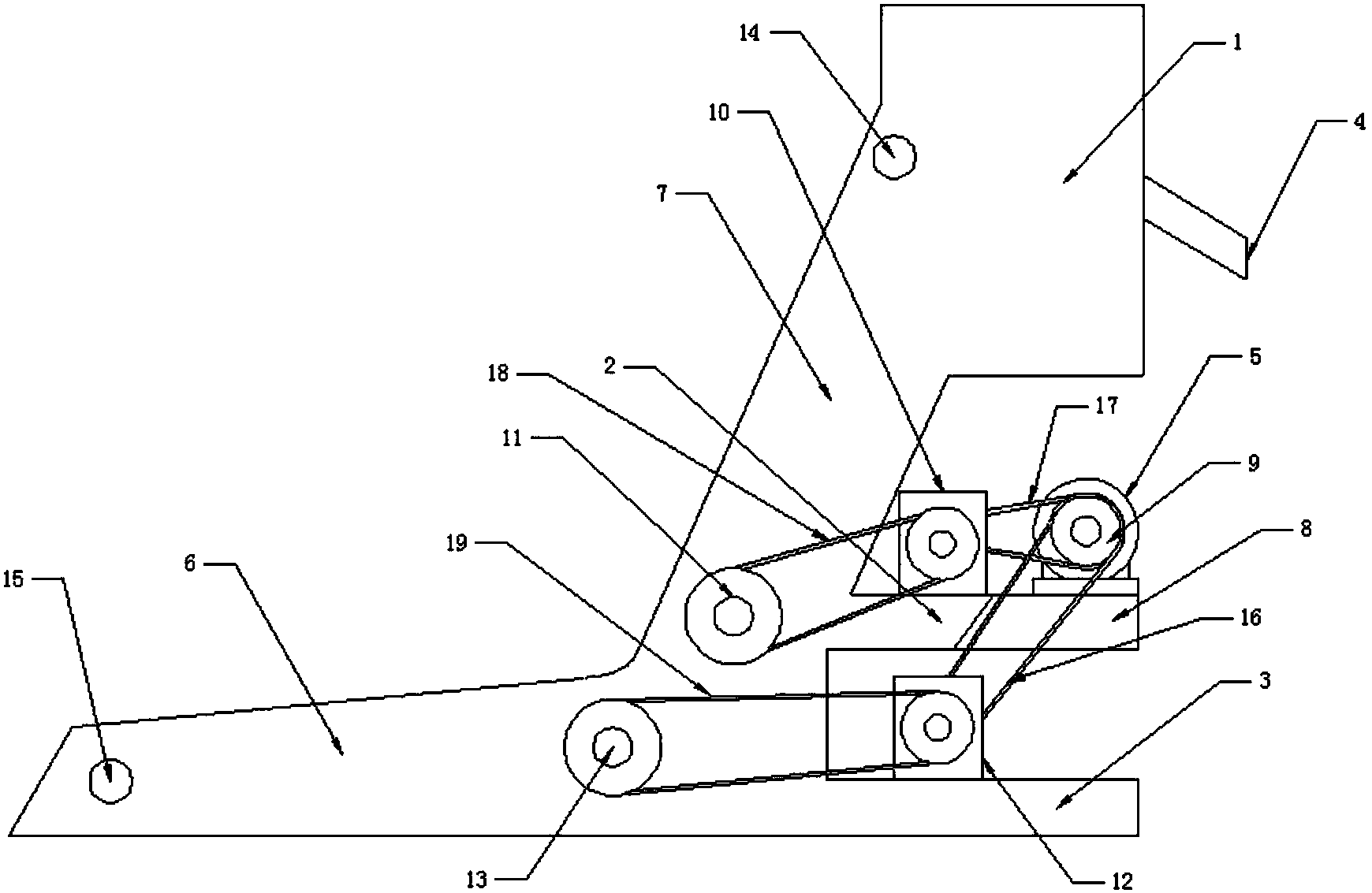 2.根據(jù)權利要求1所述的新型污水處理用格柵機,其特征在于:所述格柵機本體(1)上固定安裝有一排污滑板(4),所述連接帶(20)的頂部輸出端與所述排污滑板(4)相連。