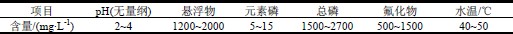 根據(jù)筆者在黃磷企業(yè)工作期間多年統(tǒng)計(jì)數(shù)據(jù),除設(shè)備冷卻循環(huán)水外每噸黃磷產(chǎn)生廢水60~90 m3 ,主要水質(zhì)指標(biāo)如表1 。