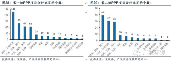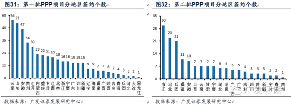 落地項目集中在市政、公共服務(wù)領(lǐng)域,占比約半數(shù)。從行業(yè)分布看,兩批簽約的項目主要集中在市政、公共服務(wù)及交通等領(lǐng)域,其中污水處理、公用事業(yè)等基建投資項目數(shù)占比約48%(兩批項目合計比例)?偣埠灱s的619個項目中,污水、垃圾處理項目173個,占28%;供水、供熱、燃氣等項目127個,占20%;鐵路、公路、港口等項目98個,占16%;學(xué)校、醫(yī)院、體育等項目74個,占12%。值得關(guān)注的是,第二批簽約項目中,學(xué)校、醫(yī)院、體育等項目僅有10個,比批減少了54個。這可能與地方財政收入有限,導(dǎo)致政府付費為主的PPP項目減少有關(guān)。