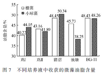 2. 3 利用養(yǎng)殖廢水培養(yǎng)的微藻細(xì)胞油脂含量
