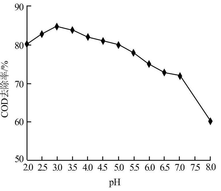 圖4 pH對(duì)廢水COD去除率的影響