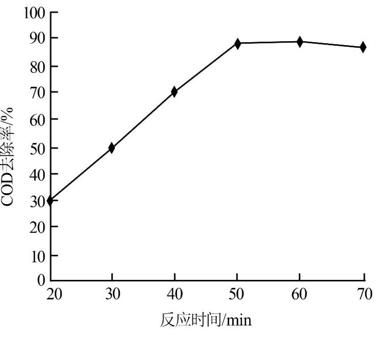 圖5 反應(yīng)時(shí)間對(duì)廢水COD去除率的影響
