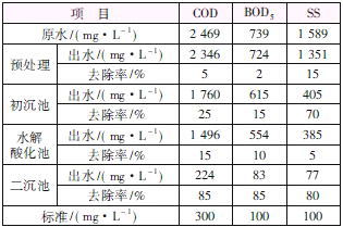 該廠生產(chǎn)廢水主要來源于打漿、洗漿工段和抄造工段,廢水(超效淺層氣浮出水) COD、BOD5、SS分別為2 500、750、1 600 mg /L,pH 值為6~9。