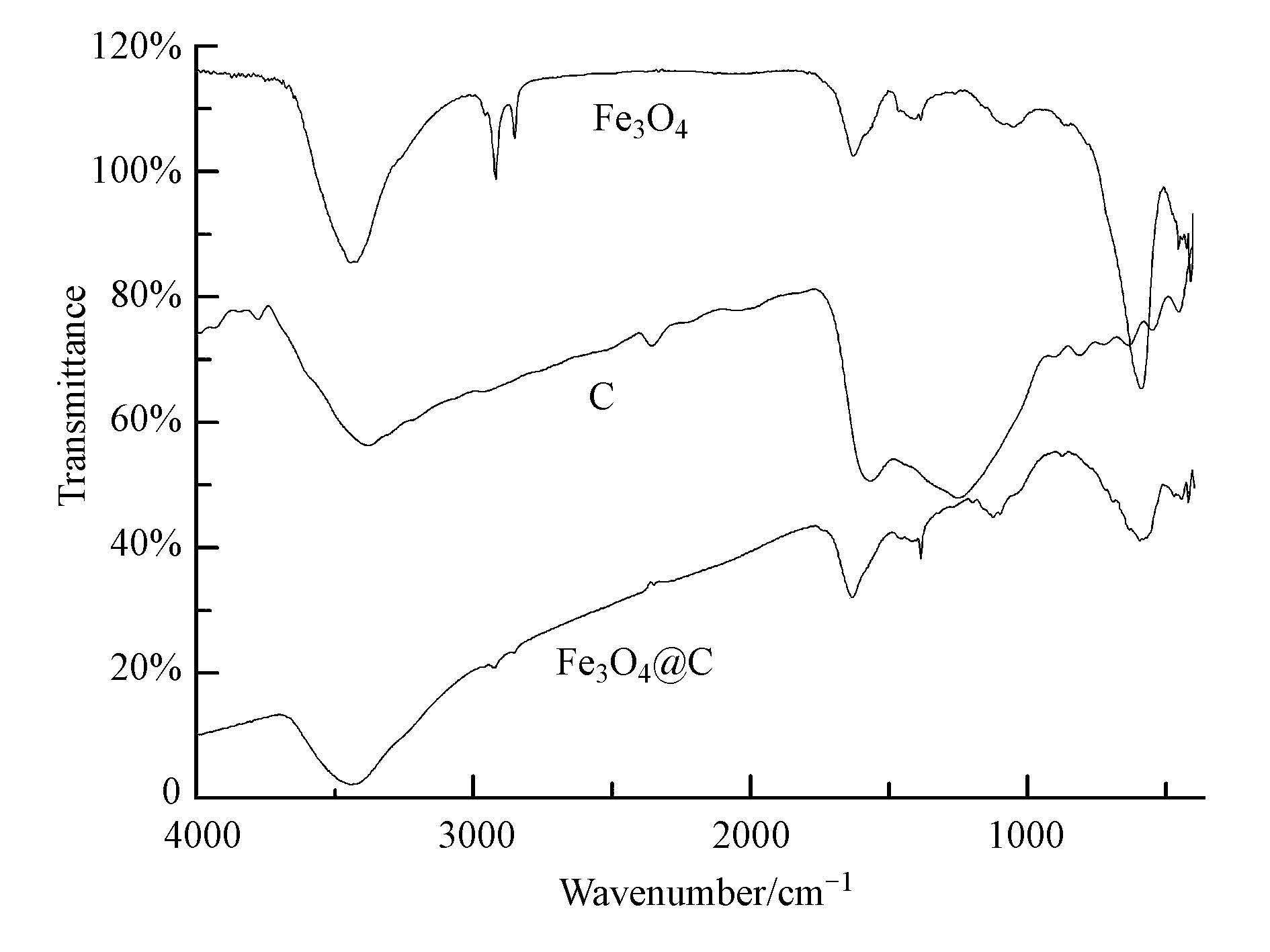 圖 4 Fe3O4,F(xiàn)e3O4@C和C的紅外光譜圖