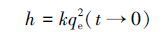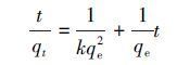 式中,k是吸附速率常數(shù)(g·mg-1·min-1),qt是任意時刻甲基綠的吸附量(mg·g-1),qe是平衡吸附量.起始吸附速率h(mg·g-1·min-1)可以用以下方程式描述: