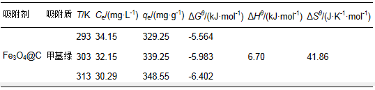 表 1 甲基綠在Fe3O4@C上吸附的Langmuir和Freundlich模型擬合參數(shù)