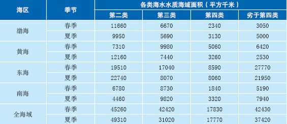 2016年未達(dá)到類海水水質(zhì)標(biāo)準(zhǔn)的各類海域面積