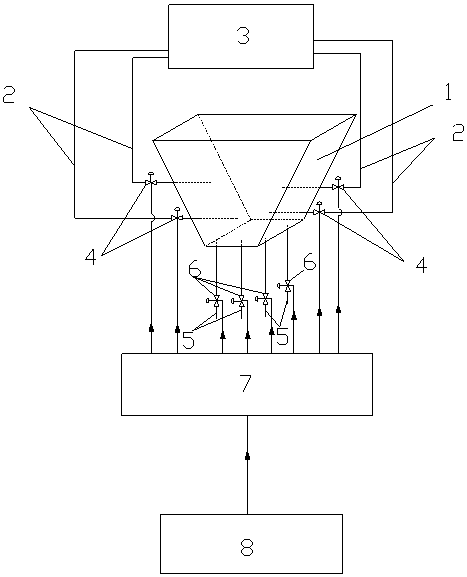 1.一種污水處理廠化學(xué)除油器自動排泥裝置,其特征在于,在化學(xué)除油器的四周側(cè)壁上連通有多根氮?dú)夤艿,氮(dú)夤艿赖牧硪欢伺c氮?dú)庠聪噙B;每根氮?dú)夤艿郎暇O(shè)有電磁閥;