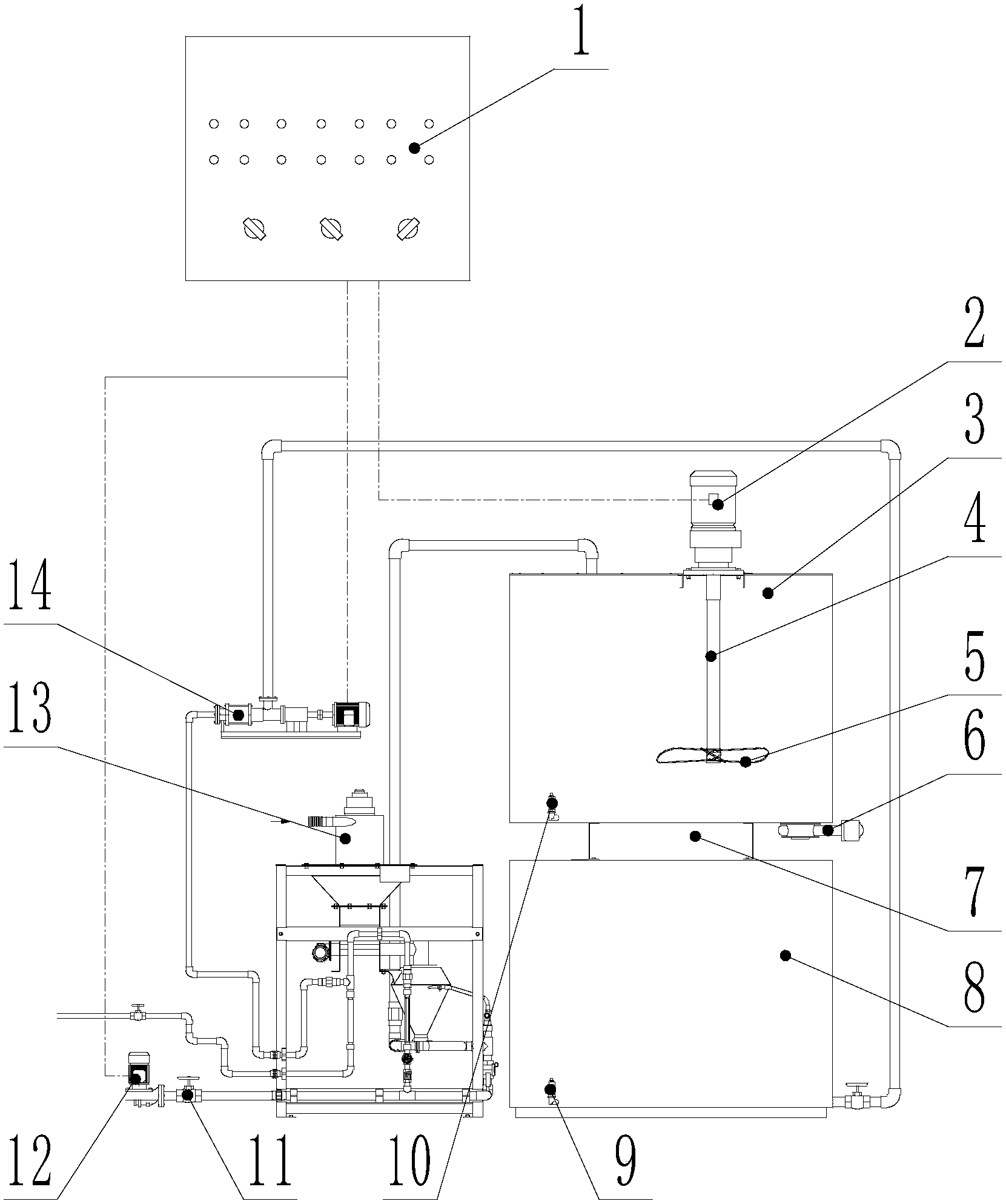 2.根據(jù)權(quán)利要求1所述的加藥系統(tǒng),其特征在于,所述攪拌機(jī)包括動(dòng)力裝置、攪拌軸和攪拌葉;