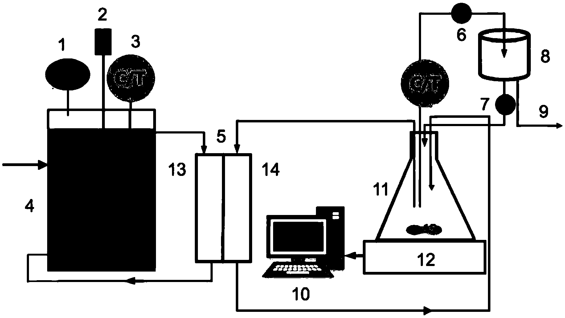 5.根據(jù)權(quán)利要求4所述的裝置,其特征在于,所述厭氧生物反應(yīng)器的出口與所述正滲透膜組件的入口連接;所述正滲透膜組件的出口與所述厭氧生物反應(yīng)器的入口連接。