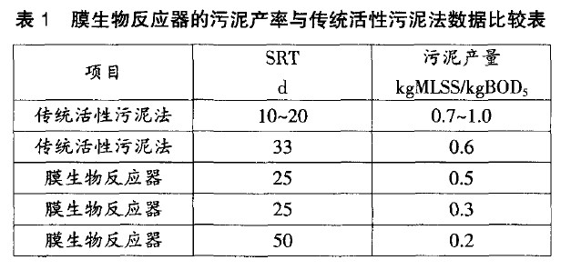 d)膜生物反應器的污泥產率低可以通過表1進行比較: