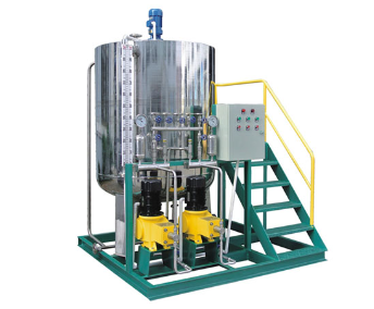 固體或液體藥劑加入溶藥箱內(nèi),然后按比例加入工業(yè)水?dāng)嚢枞芙,由計量投加系統(tǒng)投加到投藥點(diǎn)。投加控制可采用手動方式,也可依據(jù)上位系統(tǒng)輸出的控制信號進(jìn)行隨動控制,自動投加。