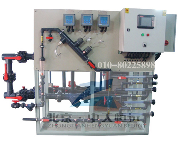 示蹤劑加藥裝置由示蹤劑儀表、PH儀表、0RP儀表、電導率儀表、控制系統(tǒng)、無線遠傳系統(tǒng)等部分組成。其工作原理是由示蹤劑儀表檢測循環(huán)水系統(tǒng)中藥劑的濃度,進行PID運算,然后自控制系統(tǒng)啟動或關閉加藥泵往循環(huán)水系統(tǒng)添加藥劑。其功能是使藥劑穩(wěn)定在一定的濃度范圍,達到保護管道不會結垢或腐蝕的趨勢。循環(huán)水系統(tǒng)進行排污或補水時,只要藥劑濃度滿足設定值,加藥泵依然不向系統(tǒng)中投加藥劑。從而節(jié)約客戶使用藥劑的成本。