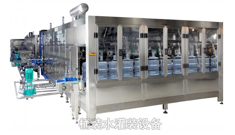 桶裝水灌裝流水線具體構成包括:自動拔蓋機→自動刷桶機→自動上桶機→自動沖洗消毒→自動灌裝→自動理蓋、套蓋、壓蓋→燈檢→自動熱縮膜機→自動套袋機(含輸送帶)。