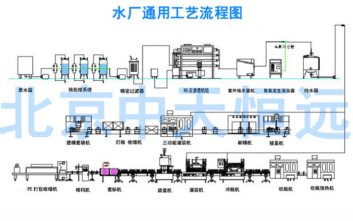 桶裝水灌裝流水線具體構(gòu)成包括:自動拔蓋機(jī)→自動刷桶機(jī)→自動上桶機(jī)→自動沖洗消毒→自動灌裝→自動理蓋、套蓋、壓蓋→燈檢→自動熱縮膜機(jī)→自動套袋機(jī)(含輸送帶)。