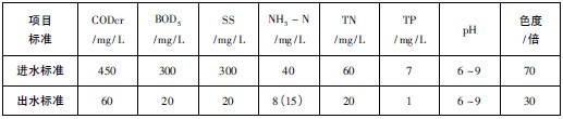 表1 設(shè)計水質(zhì)以及排放標(biāo)準(zhǔn)