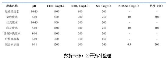 高檔面料印染各加工過程廢水污染排放情況