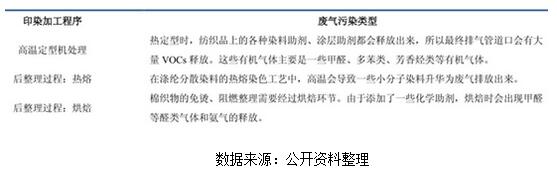 印染程序中主要廢氣污染情況:以高溫定型機(jī)處理為主要來源