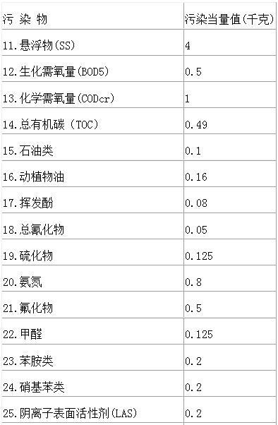 1.本表僅適用于計(jì)算無法進(jìn)行實(shí)際監(jiān)測(cè)或者物料衡算的禽畜養(yǎng)殖業(yè)、小型企業(yè)和第三產(chǎn)業(yè)等小型排污者的水污染物污染當(dāng)量數(shù)。