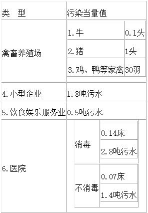 四、禽畜養(yǎng)殖業(yè)、小型企業(yè)和第三產(chǎn)業(yè)水污染物污染當(dāng)量值