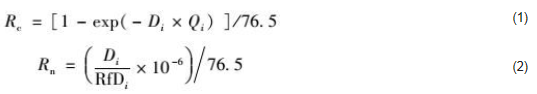 式中, Rc為化學(xué)致癌物質(zhì)通過飲用水途徑產(chǎn)生的年平均健康風(fēng)險(a-1); Rn為非致癌物質(zhì)通過飲用水途徑產(chǎn)生的年平均健康風(fēng)險(a-1); Di(Di=Ai×ci/BW)為毒性物質(zhì)i通過飲用途徑的單位體重日均暴露劑量[mg·(kg·d)-1]; Ai為平均飲水量(L·d-1); 兒童每日平均飲水為0.7L·d-1; 成人每日平均飲水量為1.0L·d-1; ci為水體中各污染物質(zhì)的實測濃度(mg·L-1); BW為人均體重(kg); 兒童人均體重為15.9 kg, 成人人均體重為56.8 kg; Qi為化學(xué)致癌物質(zhì)i通過飲用水途徑產(chǎn)生的致癌強(qiáng)度系數(shù)[kg·(d·mg)-1]; Cd的強(qiáng)度系數(shù)(Qi)為6.1 kg·(d·mg)-1; 76.5指黃石市“十二五”期間人均期望壽命(a); RfDi為非致癌物質(zhì)i通過飲用水途徑攝入的參考劑量[mg·(kg·d)-1]; Ni、Cu和Pb的參考劑量(RfDi)分別為2.0E-03、5.0E-03和1.4E-03 mg·(kg·d)-1.