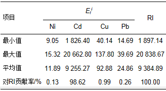 表 4 沉積物中重金屬潛在生態(tài)風(fēng)險