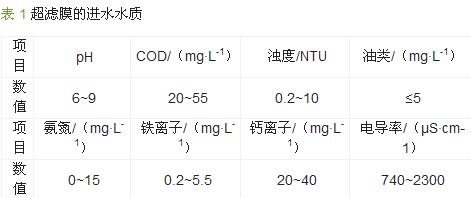 超濾膜進(jìn)水水質(zhì)見表1。