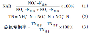 傳統(tǒng)脫氮需經(jīng)過NO2-→NO3-的過程,短程硝化可將硝化過程終止于亞硝酸鹽階段,抑制亞硝酸鹽氧化菌(NOB) 的活性,從而實(shí)現(xiàn)亞硝酸鹽的積累,與傳統(tǒng)工藝相比可節(jié)省供氧量25%、節(jié)省反硝化碳源40%、減少污泥生成量50%、減少投堿量、縮短反應(yīng)時(shí)間。但是,AOB 生長緩慢,易流失,難以在系統(tǒng)中維持較高的污泥濃度。因此,如何持久地維持較高濃度NO2-的積累及影響NO2-的積累因素成為研究的重點(diǎn)。目前研究焦點(diǎn)多集中于短程硝化與厭氧氨氧化聯(lián)合工藝的研究。
