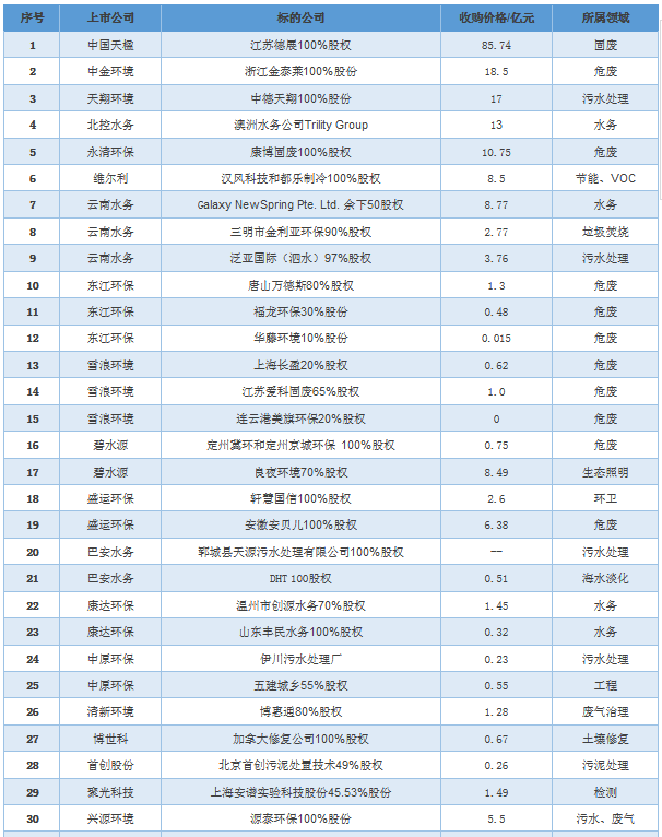 2017年中國(guó)環(huán)保上市公司共已發(fā)生30余起并購(gòu)案,涉及總金額218億元,并購(gòu)勢(shì)頭依然強(qiáng)勁。