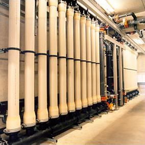 膜生物反應(yīng)器是一種高效膜分離技術(shù)與活性污泥法相結(jié)合的新型水處理技術(shù)。中空纖維膜的應(yīng)用取代活性污泥法中的二沉池,進(jìn)行固液分離,有效的達(dá)到了泥水分離的目的。充分利用膜的高效截留作用,能夠有效地截留硝化菌,完全保留在生物反應(yīng)器內(nèi),使硝化反應(yīng)保證順利進(jìn)行,有效去除氨氮,避免污泥的流失,并且可以截留一時(shí)難于降解的大分子有機(jī)物,延長其在反應(yīng)器的停留時(shí)間,使之得到比較大限度的分解。應(yīng)用MBR技術(shù)后,主要污染物的去除率可達(dá):COD≥93%、SS=100%。產(chǎn)水懸浮物和濁度幾近于零,處理后的水質(zhì)良好且穩(wěn)定,可以直接回用,實(shí)現(xiàn)了污水資源化。