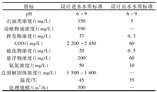 煉油廠各生產(chǎn)裝置排放的含油、含鹽污水經(jīng)收集排放至污水處理廠混合后集中處理,污水處理廠設(shè)計(jì)進(jìn)出水水質(zhì)標(biāo)準(zhǔn)見(jiàn)表1。