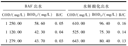 BAF和水解酸化出水 COD、BOD5檢測(cè)結(jié)果見(jiàn)表 2。