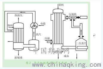 結(jié)晶器的閃蒸罐通過循環(huán)管連接1臺管殼式換熱器,罐內(nèi)濃鹽水由循環(huán)泵送至換熱器進行加熱,然后返回閃蒸罐,發(fā)生閃蒸。在加熱和閃蒸過程中,水蒸發(fā)出來,濃鹽水變成過飽和狀態(tài),鹽分析出,逐漸在閃蒸罐內(nèi)形成混鹽晶體。部分濃鹽水從循環(huán)管道上排至離心機進行液固分離,離心母液返回結(jié)晶器,固體廢物進行填埋處置。對于利用蒸汽作為熱能的多效蒸發(fā)技術,蒸發(fā)1kg水需要熱能2.32MJ,而采用機械壓縮蒸發(fā)技術時,蒸發(fā)1kg水僅需0.12MJ或更少的熱能,即單一的機械壓縮蒸發(fā)器的效率,理論上相當于20效的多效蒸發(fā)系統(tǒng)。當增加多效蒸發(fā)器的效數(shù)時,雖然可以提高效率,但增加了設備的投資和操作的復雜性。MVR工藝只在首次啟動時需要外源蒸汽,正常運轉(zhuǎn)后,僅需提供驅(qū)動蒸發(fā)器內(nèi)廢水、蒸汽、冷凝水循環(huán)和流動的水泵、蒸汽壓縮機和控制系統(tǒng)所需要的電能,而廢水蒸發(fā)所需的熱能主要由蒸汽冷凝時釋放的熱能來提供。該技術雖然能夠?qū)崿F(xiàn)脫硫廢水的零排放,但也存在不足之處,如系統(tǒng)較復雜、投資運行成本高、占地面積大等。具體聯(lián)系污水寶或參見http://www.dowater.com更多相關技術文檔。