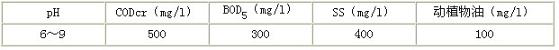 該企業(yè)污水處理后排入市政污水處理廠,必須達到污水排入城市下水道的水質(zhì)標準,即GB8978-1996《污水綜合排放標準》表4中三級標準,主要污染物允許排放濃度如下: