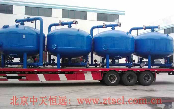3.過(guò)濾水量大,過(guò)濾效果好,過(guò)濾流速快,正常濾速可在40m/h左右,根據(jù)水質(zhì)可達(dá)60m/h;過(guò)濾器反洗采用產(chǎn)品水,且不必設(shè)增壓泵和反洗泵;反洗歷時(shí)2-3min,反洗水量<3立方米。過(guò)濾精度高,雜質(zhì)過(guò)濾精度可在0.10mm以下,出水濁度可小于0.5NTU。過(guò)濾系統(tǒng)由標(biāo)準(zhǔn)單元砂缸組成,過(guò)濾流量可從30.6立方米/小時(shí)增至2500立方米/小時(shí)。